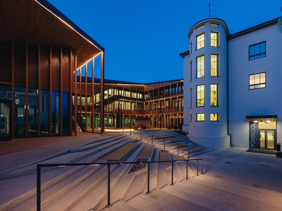 Narva uus hariduskompleks koosneb riigigümnaasiumist, põhikoolist ja lasteaiast – kogu projekt valiti välja arhitektuurivõistlusel. Lahendus tuli leida väga eriilmelistele osadele: olemasoleva hoone rekonstrueerimine, 3-korruseline koolihoone ja 2-kordne käidavate katusepindadega lasteaed ning linnaruum.
